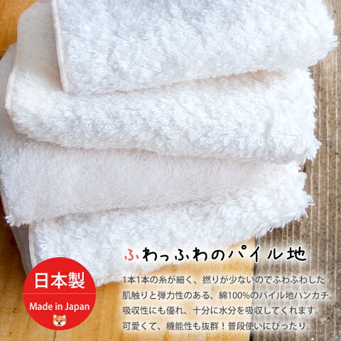 ペットのわんちゃんと合わせてプレゼントすると喜ばれること間違いなし!肌触りのいい日本製ハンカチ! 1本1本の糸が細く、撚りが少ないのでふわふわした肌触りと弾力性のある、綿100%のパイル地のハンカチ。