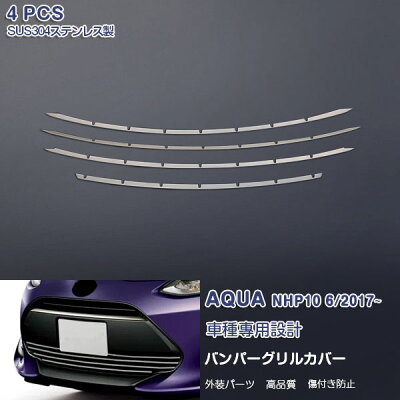 【受注生産 三ヶ月】AQUA NHP10 2017年 バンパーグリルカバー ガーニッシュ トリム プロテクター モール カスタムパーツ ステンレス(鏡面仕上げ)エアロ 外装パーツ 4PCS 新型アクア フロントナンバープレートの下方 3269