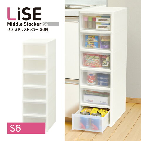 【S6段】リセミドルストッカー 6段ボックス キッチン 洗面所 脱衣所 すき間収納 スペース活用 引き出し プラスチック ホワイト【送料無料 メーカー直送】【252】/LIM-S6