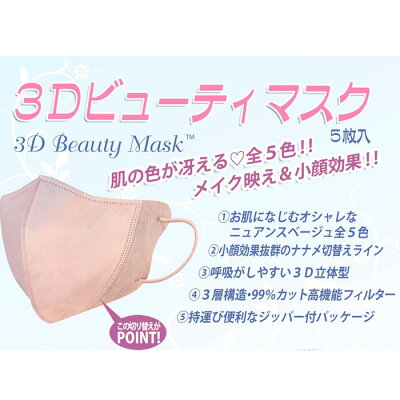 【あす楽】 肌の色が冴える 不織布マスク 5枚入り 3D 立体マスク 不織布マスク カラー 不織布 使い捨て マスク 血色マスク チークマスク 素敵 おしゃれ かわいい ベージュ カラーマスク フェイスマスク レギュラーサイズ 血色 不織布カラーマスク 不織布立体カラーマスク