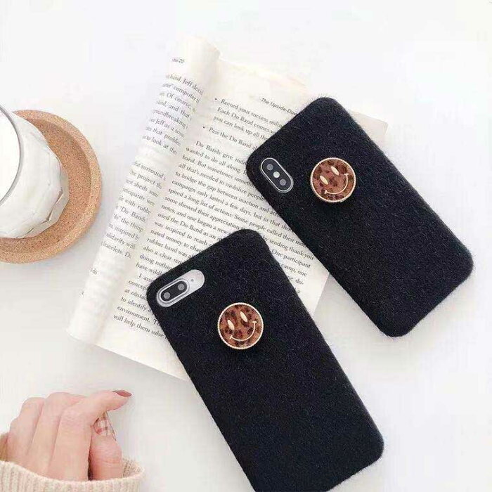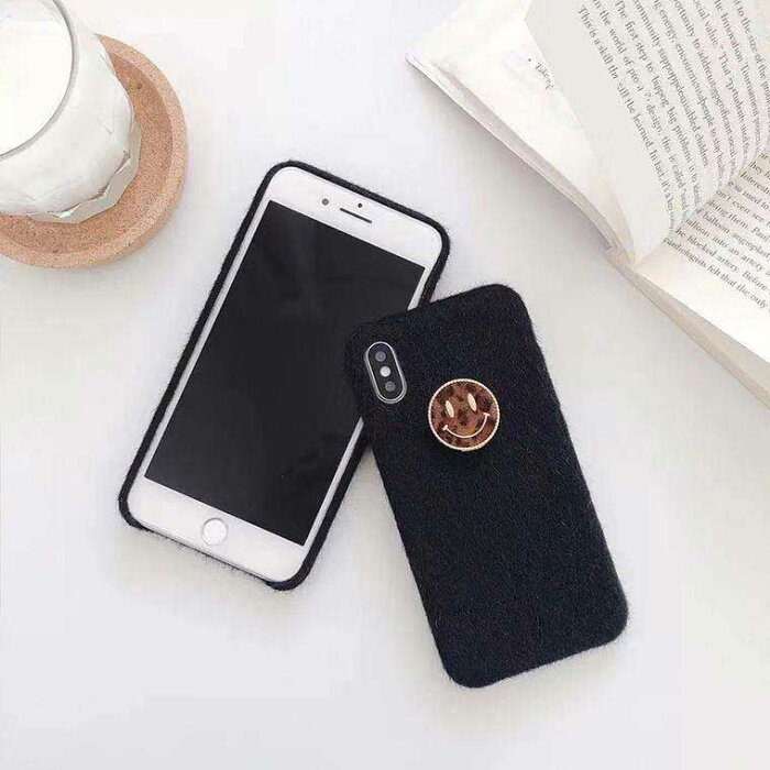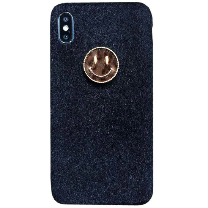【メール便送料無料】≪大人気にこちゃんシリーズ≫シャギー風のブラックボディに、コインモチーフのニコちゃん(スマイル,SMILE)がとってもかわいいスマホケース iPhone6,6S,6 Plus,6S Plus,iPhone7,8,7 Plus,8 Plus,iPhoneX,XS,iPhoneXR,iPhoneXS Max