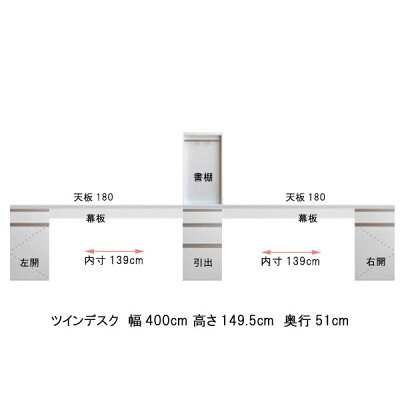 ツインデスク 幅400 奥行51 高さ149.5cm 書棚付き ブラウンBR ホワイトWH パソコンデスク PCデスク 机 PC机 パソコン机 日本製 国産 オフィステーブル オフィス机 オフィスデスク 北欧 モダン 事務所 会議室 送料無料【QSM-50K】