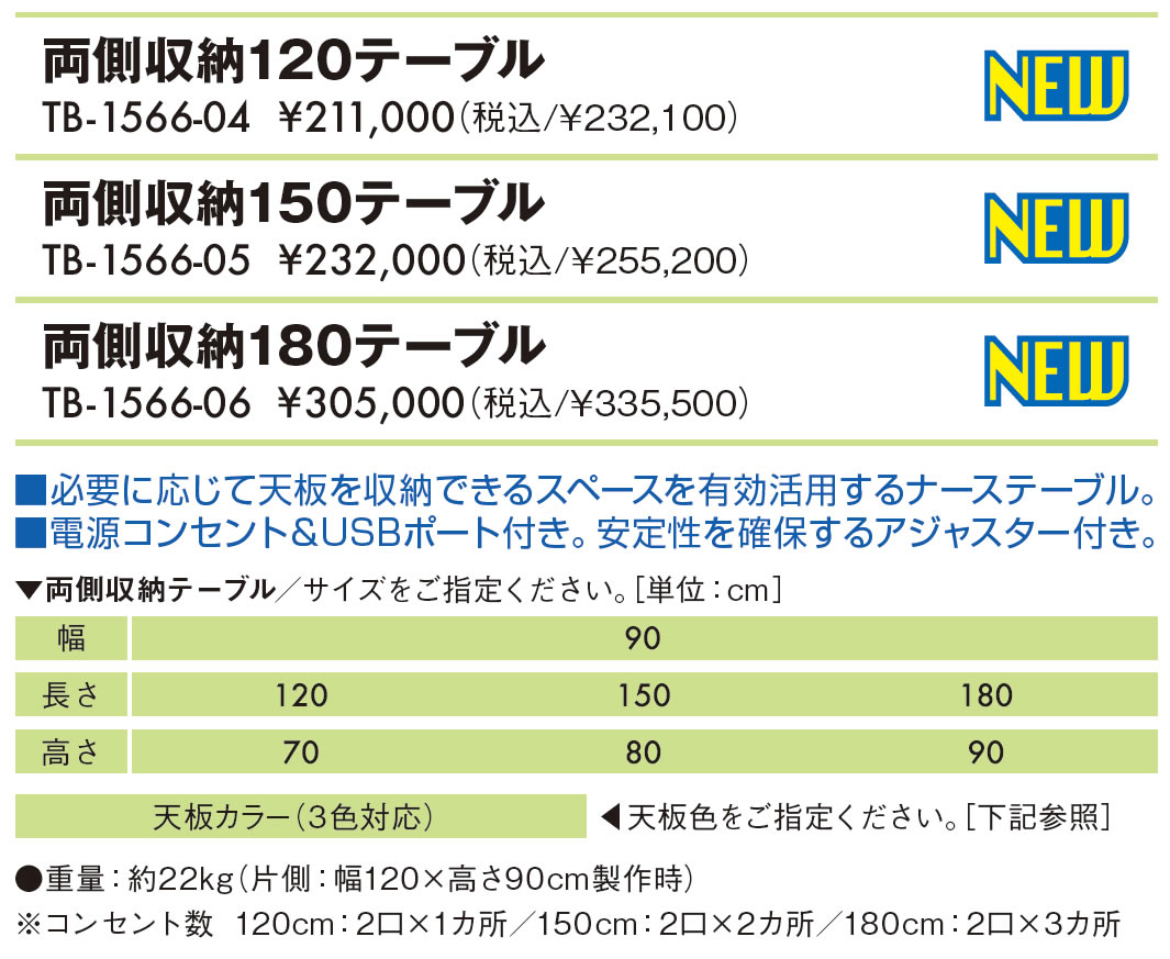 TB-1566-06 両側収納180テーブル 必要に応じて天板を収納できるスペースを有効活用するナーステーブル。
